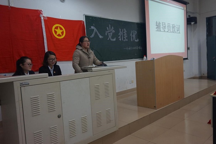 全体起立奏唱《国际歌》、《共青团团歌》之后辅导员周俊巧老师上台发言,随后8位推优候选人先后到台上发表演讲,每一位上台的候选人都经过认真准备,真诚地向大家汇报思想、学习和生活等各方面的情况,各民主评议人对候选人也进行了客观、公正的评价。演讲结束后,经过紧张的不记名投票、唱票、统票后,8名表现优秀的团员顺获得了入党积极分子的光荣称号。