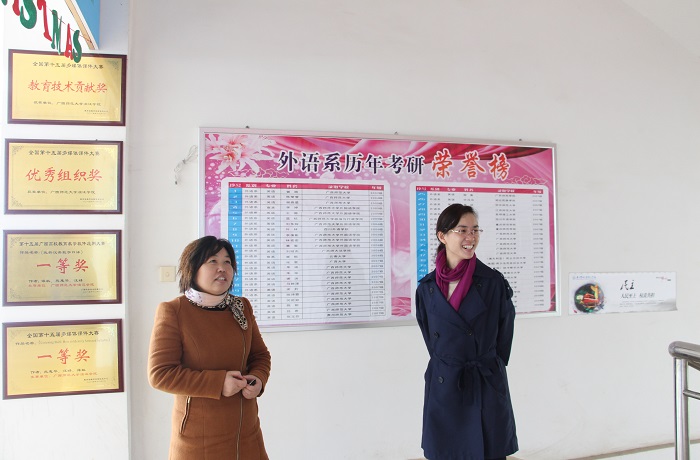 4月1日上午,学院副院长章冬兰来到外语系指导工作。在我系领导的陪同下章副院长参观了外语系文化长廊,并对外语系近些年在转型发展、师资建设、宣传、文化建设等方面的成绩表示肯定。