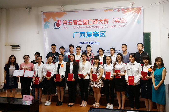 第五届全国口译大赛广西区复赛优胜奖获奖选手合影