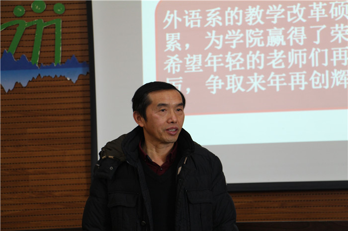 随后,莅临典礼的学院领导为获奖个人及团队进行颁奖。典礼过后,学院院长周世中发表了讲话,他赞扬了近年来外语系通过参加赛事带动教学改革、教师团队建设的尝试和取得的优异成绩,肯定了年轻教师们为之付出的辛勤汗水,并希望外语系全体教师能够通过大赛,及时调整,归纳总结,争取来年取得更加辉煌的成绩。