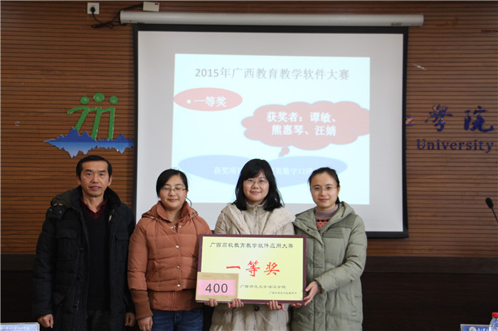 在由广西教育厅主办,广西高等教育学会高校教育技术专业委员会承办的第十五届广西高校教育教学软件应用大赛中,外语系选送8个作品参赛。经过角逐,获得一等奖1项,三等奖四项的好成绩。综合成绩在广西高校中位居第二。