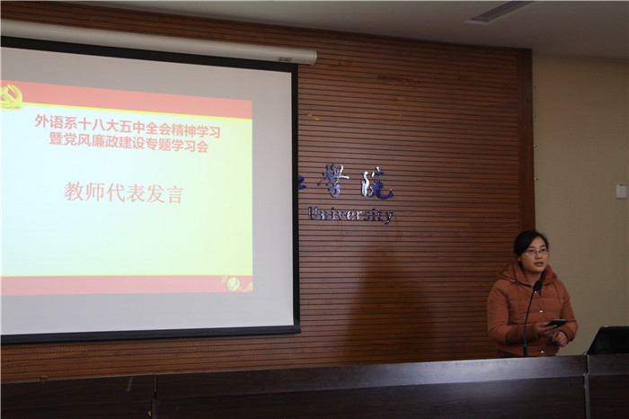外语系举行十八届五中全会精神学习 暨党风廉政建设专题系列活动