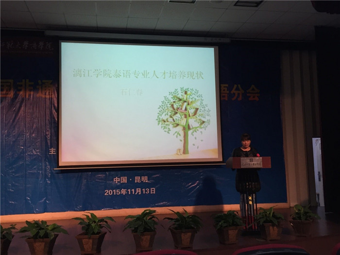在研讨会上,来自各个高校的专家、学者就小语种教材建设、课程改革、专业建设、面临的问题与挑战、如何培养符合面向东盟的应用型人才等方面进行了深入的探讨和交流。在泰语教研分会场的讨论中,我院石仁春老师就“漓江学院泰语专业人才培养现状”做了主题发言,介绍了我院泰语专业的人才培养现状、人才培养理念、核心课程设置、应用能力培养、课程教学改革等情况,得到了与会专家、教师的充分肯定。