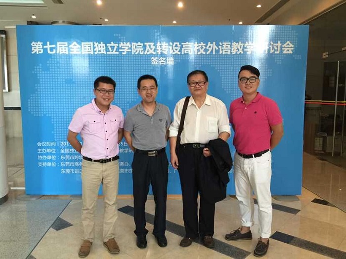 2015年10月23日-26日, 第七届全国独立学院及转设高校外语教学研究会年会于在广东省东莞市召开。 大会由全国独立学院及转设高校外语教学研究会主办,东莞市政府承办。本次年会首次尝试由之前的研究会会员高校承办转为由政府承办,是为政府、高校、企业三者之间协同配合,更加科学化、合理性的设置英语人才培养体系的一次大胆尝试。我院外语系党总支书记陈俊杰、大学外语教研室覃浩参加了此次年会。