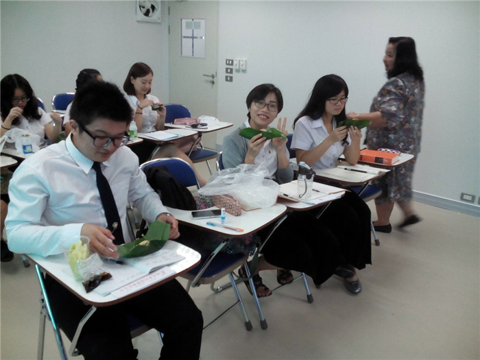 广西师范大学漓江学院2013级泰语专业赴泰留学实习于2015年8月17日在泰国商会大学正式开学上课,到现在为止已经两月有余,同学们已经适应了这里的学习生活环境。在这两个月里,同学们的泰语水平有了很大的进步,特别是口语,在泰国这个有利环境下,同学们锻炼口语的机会到处都是。关于生活方面,同学们很喜欢泰国的衣食住行,都爱上了这个国家。