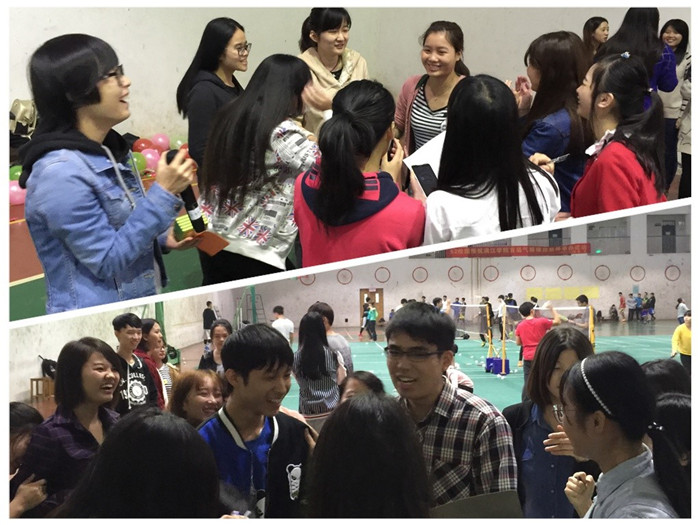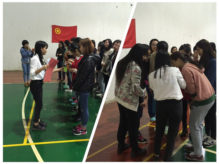 2015年11月3日下午我系2014级英语第三团支部于体育馆开展以“坚持三走,赢在未来”为主题的团日活动。此次结合商务英语专业特点,旨在让同学们通过团体竞赛,“走出宿舍,走下网络,走向操场”,以强健的体魄和良好的心智迎接未来的挑战。