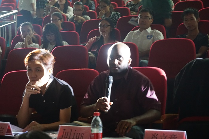 2015年10月21日晚上7点,外语系在多功能报告厅举办2015年“外研社杯”暨第二十届中国日报社“21世纪·可口可乐杯”全国英语演讲大赛决赛。现场担任评委的有外语系的熊惠琴、孙建国、覃浩、蔡鹏宇、Julius等老师。该赛事代表着我院学子英语演讲最高水平,受到广大师生的关注,比赛当天整个多功能报告厅内座无虚席。