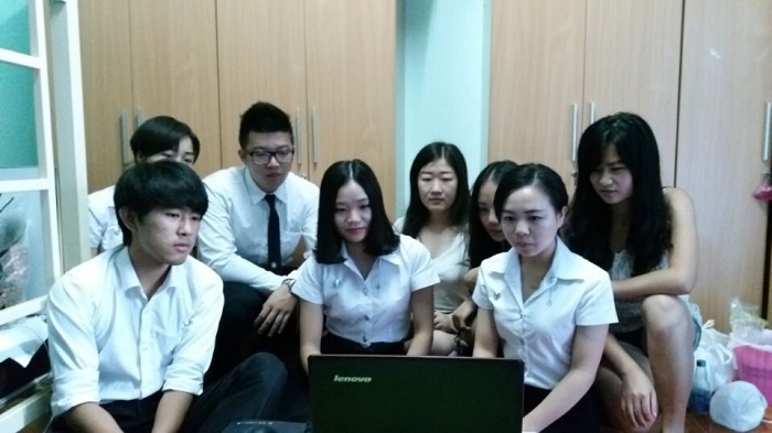年9月3日北京时间10时(曼谷时间9时)广西师范大学漓江学院2013级泰语专业全体同学在泰国商会大学学生宿舍观了“2015年9月3日 纪念中国人民抗日战争暨世界反法西斯战争胜利70周年阅兵式。” 广西师范大学漓江学院2013级泰语专业全体同学于2015年8月5号抵达泰国商会大学,将在此交换学习10个月,于次年5月份返回广西师范大学漓江学院。在2015年9月3日这天,“纪念中国人民抗日战争暨世界反法西斯战争胜利70周年阅兵式”在天安门广场举行。这天早晨曼谷时间9时,全班同学集体观看了阅兵仪式,在异国他乡看着这激动人心的阅兵式,看着整齐的方队、英姿飒爽的中国人民解放军、看着日益强大的祖国,同学们心情激昂,那种在国内没有的冲动感,那种对祖国的热爱越来越强烈。身为中国人,大家心里涌上了无比的自豪感。身为留学色生在外国,不仅代表了学校的形象,更是代表了一个国家、一个民族的形象,我们有责任和义务为了中华民族伟大复兴,而努力奋斗。