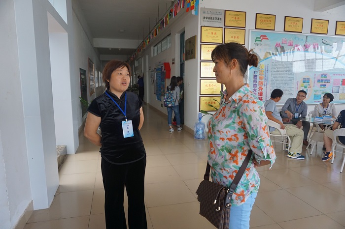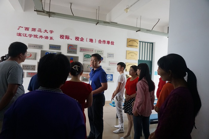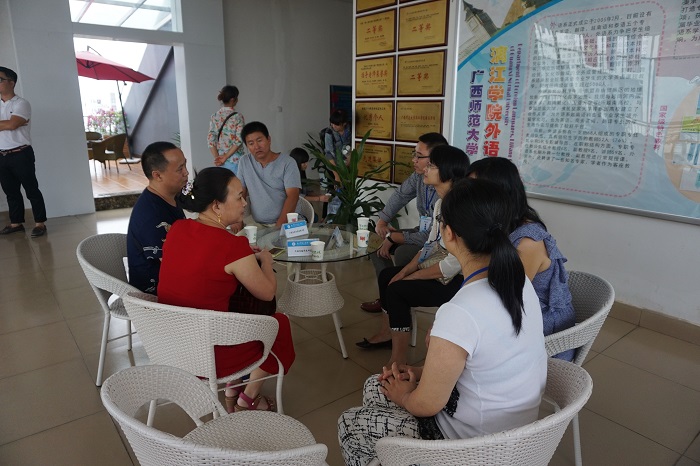 见面会后,外语系副主任肖立章代领家长参观了外语系所属楼层,从档案室到文化长廊,介绍和展示了各种教育教学设备和所获荣誉,并耐心解答家长各种问题。随后新生家长来到外语系文化平台,与早已在此等候的各专业教研室主任们畅谈孩子们专业学习和未来发展问题。家长们各类问题都得到了老师们耐心的解答。