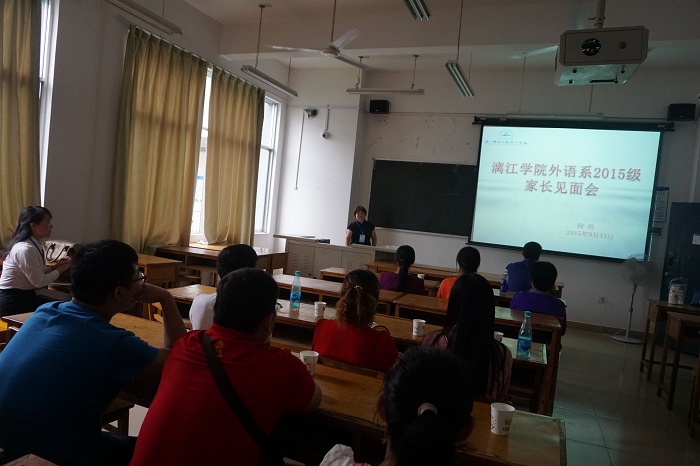 为拉近与新生及家长的距离,结局新生报到时家长对于孩子大学学习、生活的疑虑,外语系于2015年9月13下午三点在2310教室举行外语系2015级新生家长见面会,近三十名家长参与此次会议。