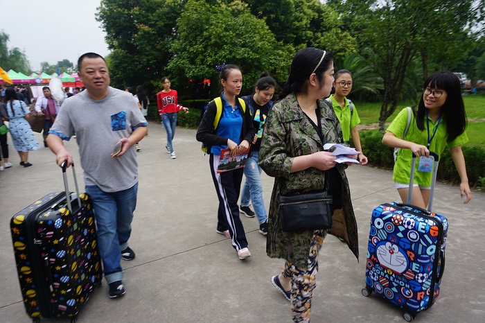 当清晨的阳光洒下时,外语系迎新接待工作的各个环节均有条不紊地进行着。负责帮助新生搬运行李的同学不断往返校门口、停车场与外语系报道处之间,每到来一位新生,大家都争先恐后地前去帮忙。系领导和辅导员老师们在现场耐心细致的帮助新生解答疑问。学生干部、志愿者也在各处维持秩序,为新生亲切指引,贴心地为焦急等待中的家长递上一杯水……高效的办事效率,亲切的待人态度,很快就建立了新生及其家长对我系的认可与信赖。