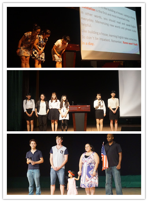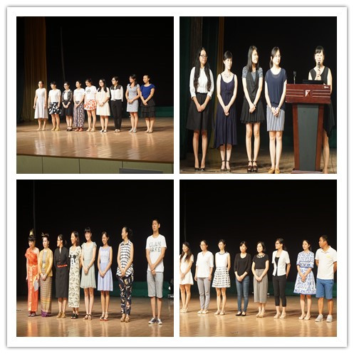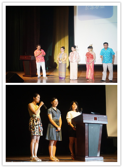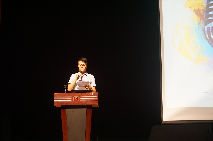 观看完学院宣传视频后,来开了师生见面会的大幕。首先,外语系主任何玲副教授上台为新生致辞,她介绍了学院和外语系的办学历史,详细解析了“厚专业、重实操、行至善、甲天下”系训,并对英语、商务、翻译、越南语和泰语五个专业的课程设置等各个方面的情况进行讲解。她鼓励同学们在适应中成长、树立学习目标。紧接着教师代表孙建国老师发表了讲话。他重点强调,大学学习,靠的是“师傅领进门,修行靠个人”的钻劲,强调学生在专业老师的指导下应更系统的学习专业知识,用于实践,为未来走向社会打下扎实的基础。他还强调在大学的黄金时期,希望同学们努力奋进,积极向上,成为一名优秀的外语学子。系团总支学生副书记梁月明代表全体老生在接下来的环节中对新生的到来表示热烈欢迎,她道出,大学三年里,通过不懈努力,自己从不敢开口讲话的怯懦胆小到参加全国英语演讲比赛的大方勇敢的蜕变。她希望通过自己的亲身经历向新生们传递一条信息:“不畏辛苦,方有收获”。外语系新生代表也发表了在高考过后不一样人生的感悟。