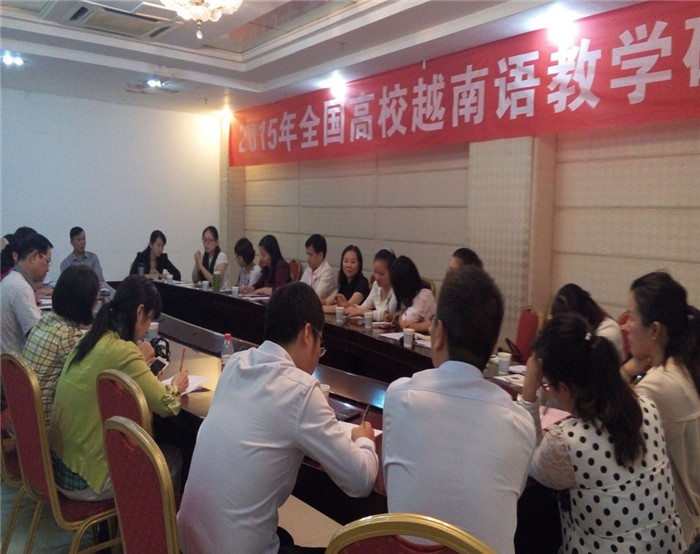 借着此次大赛机会,各高校越南语专业的教师们齐聚一堂,就《越南语视听说》这门课程展开了专题教学研讨。会上,洛阳外国语学院谭志词教授,上海外国语大学卢珏璇老师等为分别发言,他们从教材选取、授课方式等方面分享了他们对于《越南语视听说》这门课程的授课经验和心得。与会老师针对自己在教学中遇到的各类情况纷纷发言请教,得到了专家的解答和传授,会场气氛十分热烈。