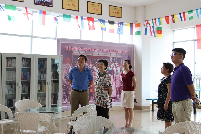 6月25日,学院董事长丁静、副院长章冬兰一行到外语系检查指导工作,外语系相关负责人陪同参加了实地考察活动和座谈会。
