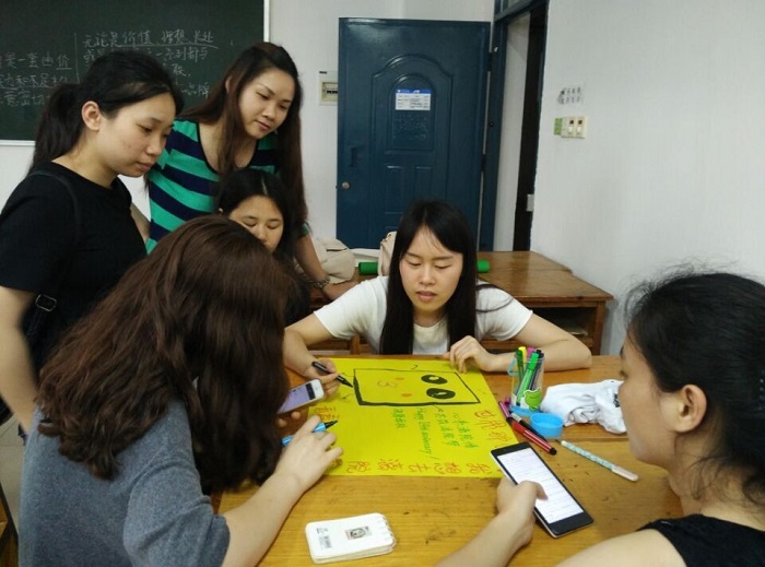 在我院14周年院庆即将到来之际,支部成员首先共同欣赏了我院14年前旧照片。照片里是漓院初建成时的青涩模样,当时的漓院远没有如今的柳绿花红,生机勃勃,显得有些荒凉,崭新的教学楼仿佛也缺乏着那么一点儿“人情味儿”。跨越了8个年头的光阴,支部成员纷纷表示现如今的漓院繁花似锦,绿树成荫,发生了翻天覆地的变化。为了迎接院庆的到来,支部还举办了“迎校庆,赠福语”的活动。支部成员分为5人以小组,分别在彩色卡纸上设计字画、祝福语。有的别出心裁的画了蛋糕祝贺学院生日快乐,有的更是写到“世界那么大,我想去漓院院庆晚会看看”,各成员都积极主动,用自己的实际行动表达对学院的祝福。