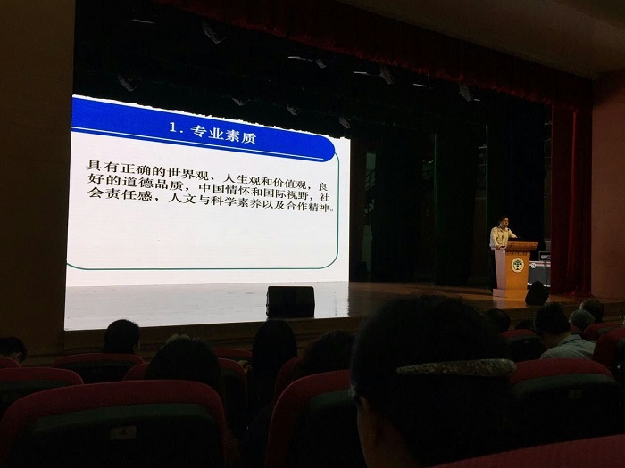 孙有中教授在演讲中说到培养英语专业人才应把人文素养与专业知识相结合,既要培养他们丰富的跨学科专业知识,跨文化交际能力,也要培养他们的世界观、人生观、价值观,培养他们良好的道德品质、中国情怀、国际视野以及社会责任感。
