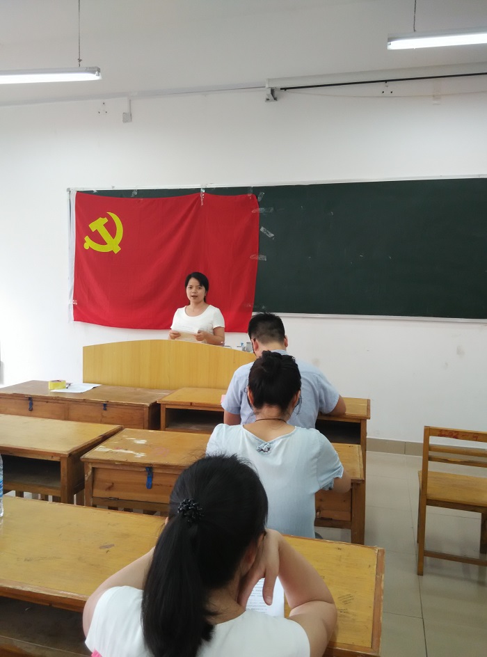 外语系教工党支部于6月3日下午在2201教室召开党员发展大会,系党总支书记、总支委员及全体教工党员出席会议,本次会议由教工党支部书记阳绮兰同志主持。