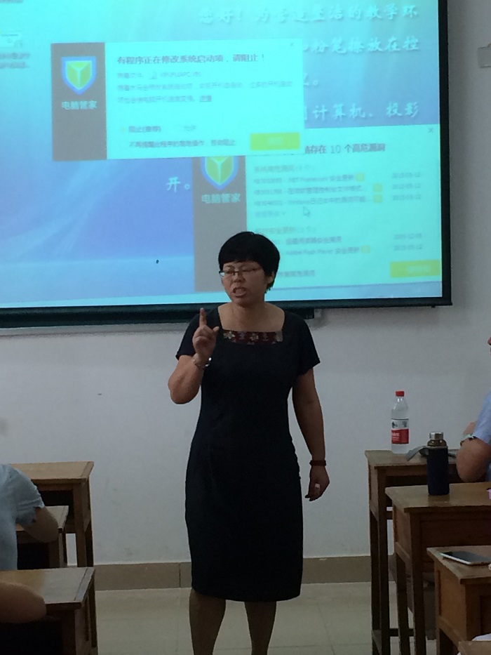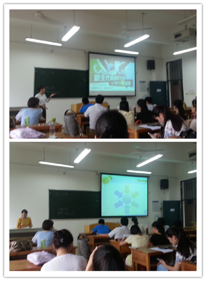 在接下来的环节中,周燕萍、俞蓓、覃浩三位老师分别登台发言,介绍近期赴外地学习、培训老师的心得与体会。周燕萍老师以“英语专业的创新与发展”为题指出,文科教师面临着转型发展的形势,教师应该在应用实践型教育方面做好引导作用,使理论学习与技能获得相互补充,达到平衡。俞蓓老师发言的题目是“文华在线与英语课堂的融合”,重点介绍了文化在线供应商提供的信息技术与自己的教学的深度融合,以及互动教材、教学云平台、教学服务整合一体的混合式学习服务的体验;覃浩老师则以“蓝鸽与外语教学之我见”发言,大学英语教学应该牢牢以学生需要为指导,以effective learning为中心,既要体现提升学生综合素质与全面发展的育人价值,也要体现对基础语言能力的重视。