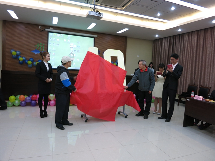 接着,伴随着慷慨激昂的音乐,刘林海副院长与外语系孙建国副教授一并为本届文化节揭幕,随着红色幕布的缓缓落下,一个代表了本届文化节的“10th”的标识展现在大家的面前,第十届外语文化节在大家的期盼下正式拉开帷幕。