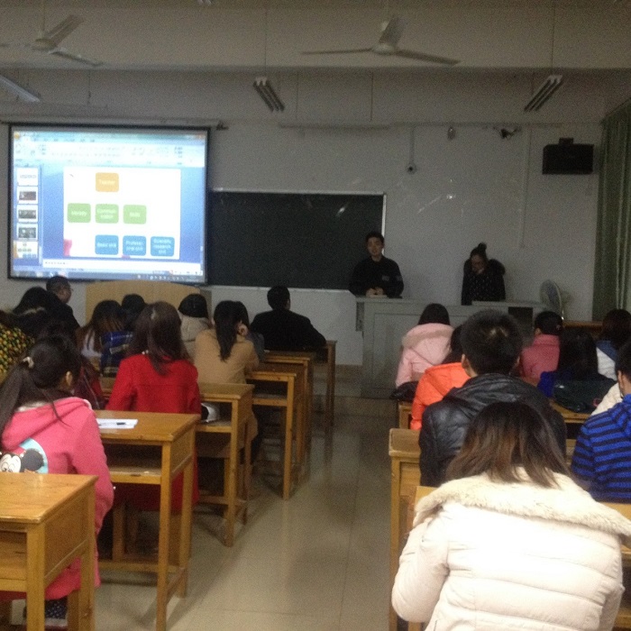 教学学生代表们在做展示