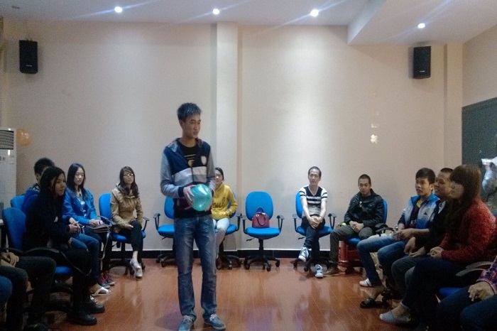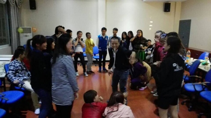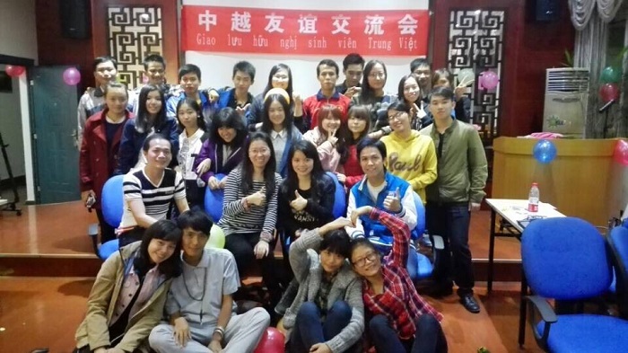 11月9日晚在师大育才校区国教楼210教室由我院外语系越南语教研室举行了一个小型的“中越友谊交流会”,参加活动的有越南语教研室郑克晓老师,越南外教赖开荣老师,越泰语辅导员梁黔苹老师,2014级越南语专业全班同学,以及部分越南留学生。整个活动主要以游戏的形式分别进行自我介绍,才艺表演,交流等环节,如传气球进行自我介绍。同学们和留学生们分别介绍自己的姓名,家乡,个人爱好等,且表演了各自的才艺,分别展示了两国不同的文化及当代大学生的风采。