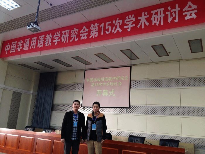 2014年11月13日-14日,中国非通用语种教学研究会第十五次学术研讨会在中国人民解放军外国语学院(洛阳)召开,来自全国54所高校的非通用语教师代表参加了会议,本次会议主题为“外语非通用语翻译研究与翻译教学”,我院外语系副主任肖立章老师和泰语专业教研室主任姚垚老师应邀参会。