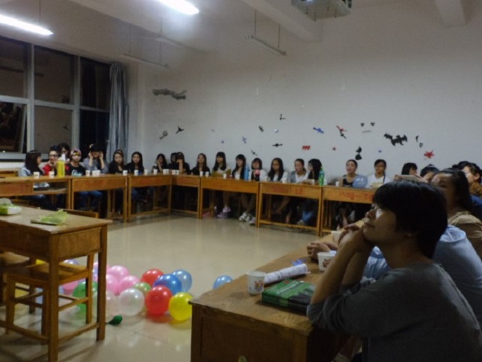 每年的10月31日,是西方传统的节日——万圣节。为了更深入地了解西方传统节日习俗,2014年10月31日晚外语系2013级英语翻译专业学生举办万圣节派对,并邀请外籍教师Julius、辅导员庞菲老师及翻译教研室的老师参加一同庆祝。