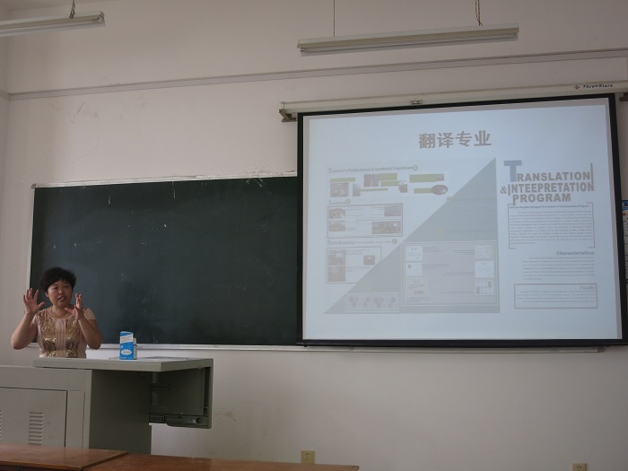 9月15日下午,外语系召开了2014级新生家长见面会。家长见面会上,面对来自全国各地的学子和家长,系主任何玲老师首先对新生加入外语系大家庭表示了热烈的欢迎,对家长寄予学院和外语系的充分信任表示了诚挚的感谢。接着,何玲结合当前教育形式,对外语系的办学特点进行了详细的介绍。同时,培养应用型人才的创新专业教学模式也得到家长们的肯定。而关于英语在高考改革中的相关政策介绍和就业前景分析,则免去了家长的担忧。外语系优秀的师资队伍和教学成果给家长们打了一针强心剂。有家长表示:“我很满意你们的办学能力,把孩子交付给外语系我很放心,对孩子的未来充满希望!”