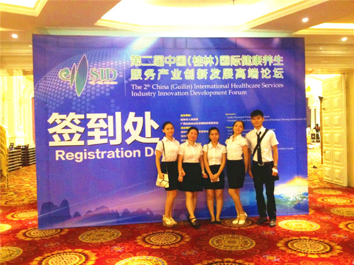 2014年9月13日至15日,第二届中国(桂林)国际健康养生服务产业创新发展高端论坛在桂林、龙胜等地召开主题会议和分会场会议,270余位来自国内外养生专家学者,大型养生机构和健康养生产业企业代表出席论坛,本次论坛由广西区发改委、桂林市人民政府主办,探讨健康养生服务产业的发展模式,通过推动养老健康产业的发展,带动桂林经济社会的发展。会议期间,机场接待、酒店入住接待、项目推介和论坛会议的接待和翻译工作,由我院外语系的师生共同承担。