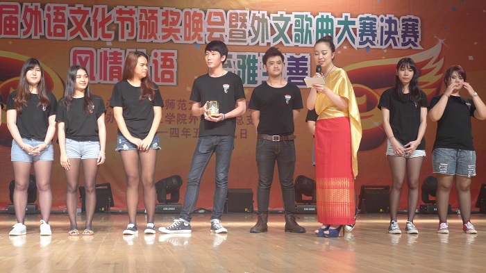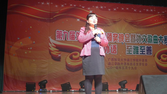 5月19日晚,外语系在多功能报告厅举行了第九届外语文化节颁奖晚会暨外文歌曲大赛决赛。外语系领导、院团委负责人、邀请的外籍教师及外语系师生观看了颁奖晚会及外文歌曲大赛决赛。