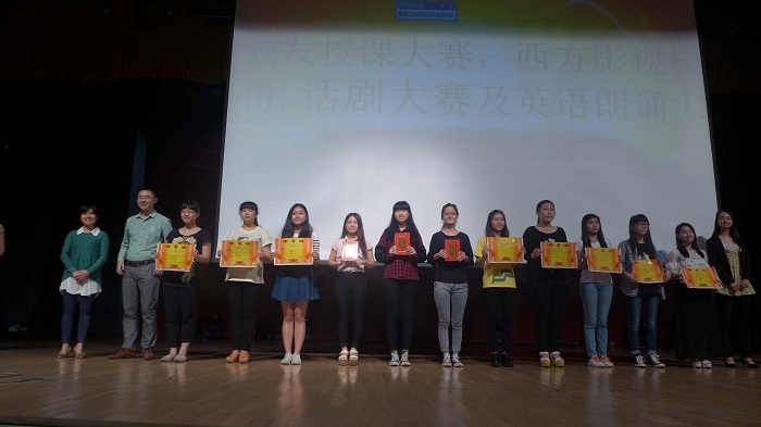 晚会最后,莅临会场的领导和嘉宾为在大学生英语竞赛、翻译大赛、英语辩论赛等赛事以及本届外语文化节比赛中获奖的同学颁发了证书。