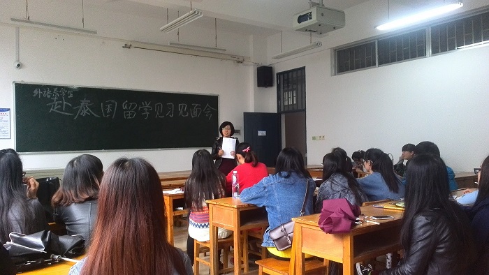 为了推进应用型、国际化人才培养,外语系积极探索赴国外进行留学见习项目。在学院领导和国际交流中心负责人的支持和帮助下,外语系开展了学生赴泰国留学见习项目。为了更好的落实留学见习项目,外语系于4月24日举行了赴泰国留学见习师生沟通会。外语系领导、国际交流中心的负责教师、相关年级的辅导员、项目负责教师以及所有参加留学见习的学生参加了沟通会。