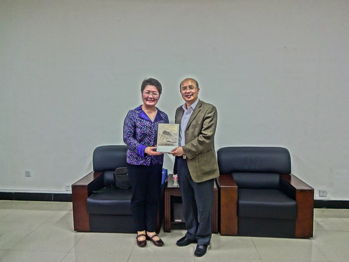 在座谈后,郝社长代表清华大学出版社向我院赠送了一套珍贵的图书。蔡院长对清华大学出版社外语分社给我院的支持和帮助表示衷心的感谢!