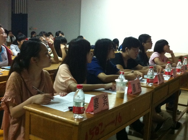 5月7日晚,第八届“外语文化月”之子项目——“外文配音比赛”在1502教室举行。配音比赛的选手既有外语专业的同学,也有来自非外语专业的同学,他们都充满对外语配音的喜爱,以高涨的热情参与到激烈的角逐当中。在比赛中,参赛选手为大家带来了电影《马达加斯加》、《西雅图夜未眠》,美剧《新成长烦恼》、泰国电影《女大十八变》等一系列风格各异的配音作品。场上的同学们用声音诠释影片中人物的喜怒哀乐、剧情的跌宕起伏,场下的同学们则尽情享受着各类配音带来的乐趣。而另一边,评委们则一丝不苟地考量着各组选手的综合表现。