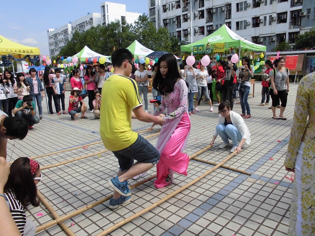 5月12日下午,第八届“外语文化月”之子项目——“国际风情展”在食堂广场举行。本项活动旨在通过同学们制作异国特色美食,表演外国的礼仪、习俗、舞蹈,营造浓厚的国际文化氛围,培养大学生的实践能力和创新精神。本次异国风情展共有九顶帐篷,分别展示的是英国、韩国、埃及、越南、泰国、美国、澳大利亚、巴西的民族风情。