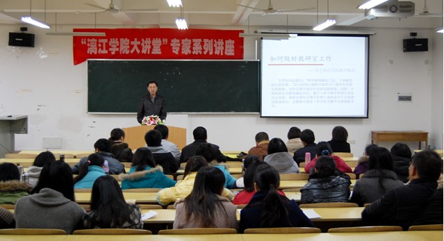 2010年12月15日下午,我院外语系主任沈斌副教授为我院的教研室主任及老师们带来了主题为“如何做好教研室工作”的讲座。