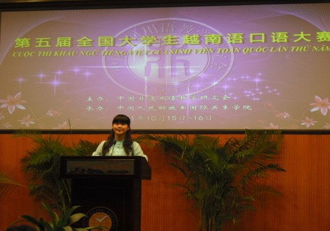 由中国非通用语教学研究会主办的“第五届全国大学生越南语口语大赛” 于2011年10月15—16日在南京成功举办,本次比赛,由来自北京大学、北京外国语大学、上海外国语大学、广东外语外贸大学、广西民族大学、云南民族大学、广西大学等18所高校的近100名选手参加,堪称历届选手人数最多,规模最大的一次越南语学习交流的盛会。