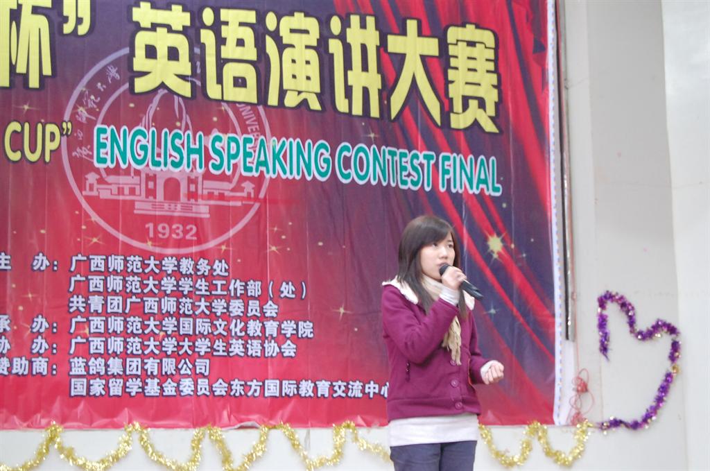 1220日,广西师范大学首届国教杯英语演讲大赛决赛在育才校区大学生学术报告厅隆重举行。此次比赛由来自美国、加拿大、新西兰、澳大利亚等7位外国英语专家担任评委。