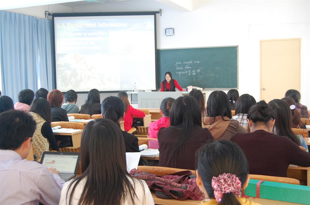 教学永远是一门无止境的艺术。为了改革课堂结构和教学方法,探索外语教学的新思路、新方法,提高教师的课堂教学效益,2009年12月26、27日,外语系蒋玲利、覃浩、蔡晓明、唐茂妮和唐艳五名教师赴北京航空航天大学北海学院,进行课堂教学观摩。