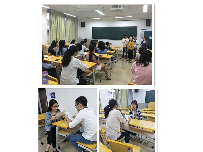 为进一步创新企业合作,拓宽就业渠道,培养具有较高专业实践能力的技能型人才,外语系加大推动学生校外实习和社会实践活动的开展。4月23日下午,外语系和桂林市灵川阳光外语培训学校在2406教室召开英语教师招聘面试, 2016级英语类专业30多名学生参加。