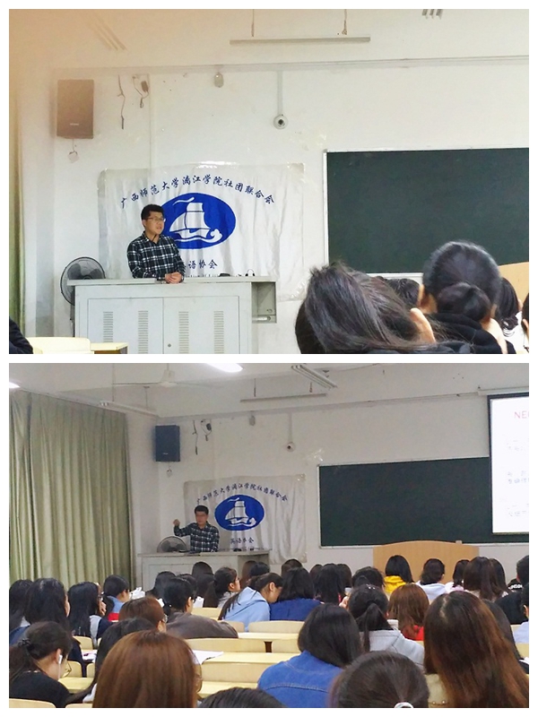 为了让我校参赛学生更好的了解竞赛题型、掌握做题方法和技巧,考出好成绩,外语系大学外语教研室及校英语协会于4月11日晚在公共教学楼1317教室举行了竞赛辅导讲座。大学外语教研室主任覃浩老师主讲,英协会干邱水玲主持。