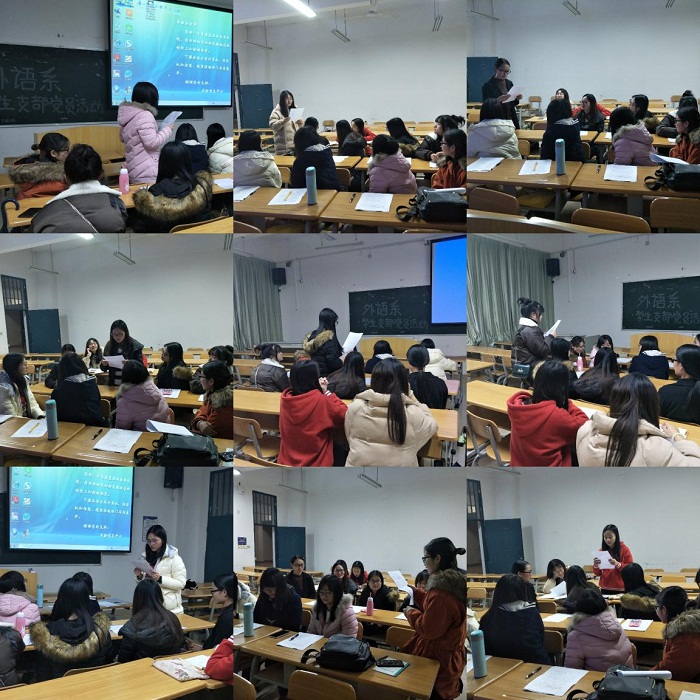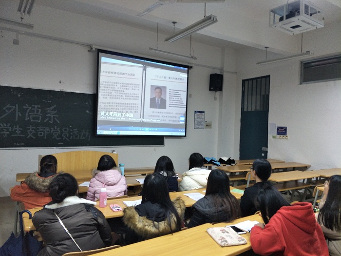 为积极学习践行“三严三实”,加强学生党员的思想道德建设和自身全面发展,开展批评与自我批评活动,外语系学生党支部于2017年12月27日晚上在教学楼2201教室举行了以“学习践行三严三实、开展批评与自我批评”为主题的党日活动。全体党员参加了此次活动。活动由学生党支部成员张烽主持。