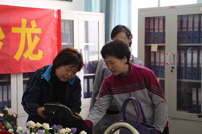 丁静董事长查看外语系国家级大创项目“泰国特色手工艺包”产品