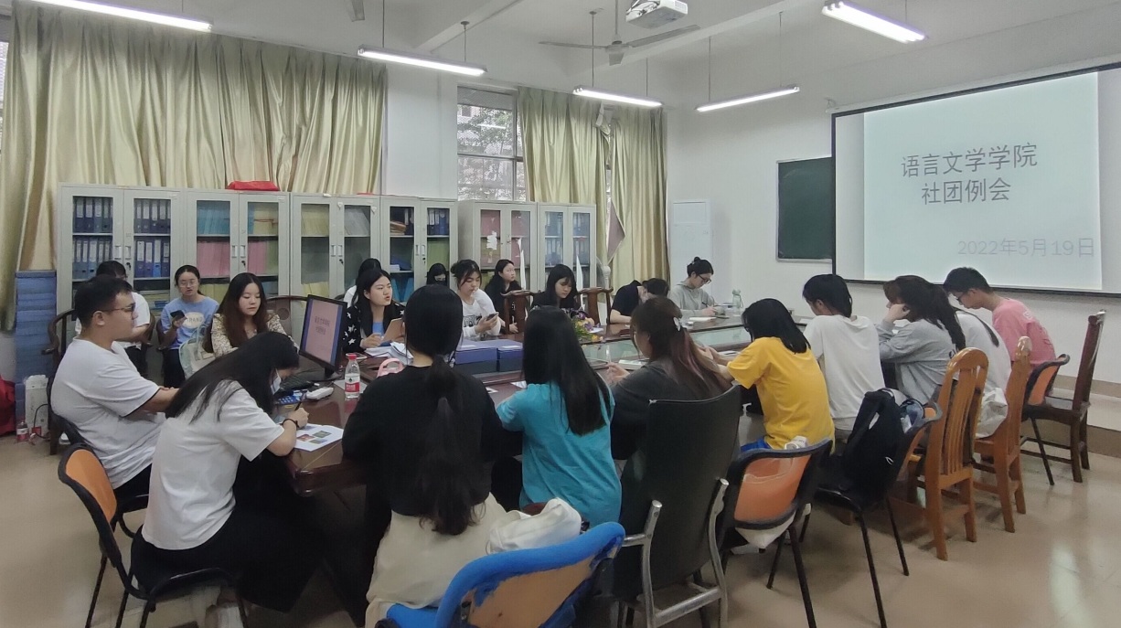为切实加强我院社团队伍建设管理,总结我院学生社团的工作情况,推动学生社团建设发展,5月19日下午,语言文学学院团总支学生会社团部在2108会议室召开学院各社团工作例会。