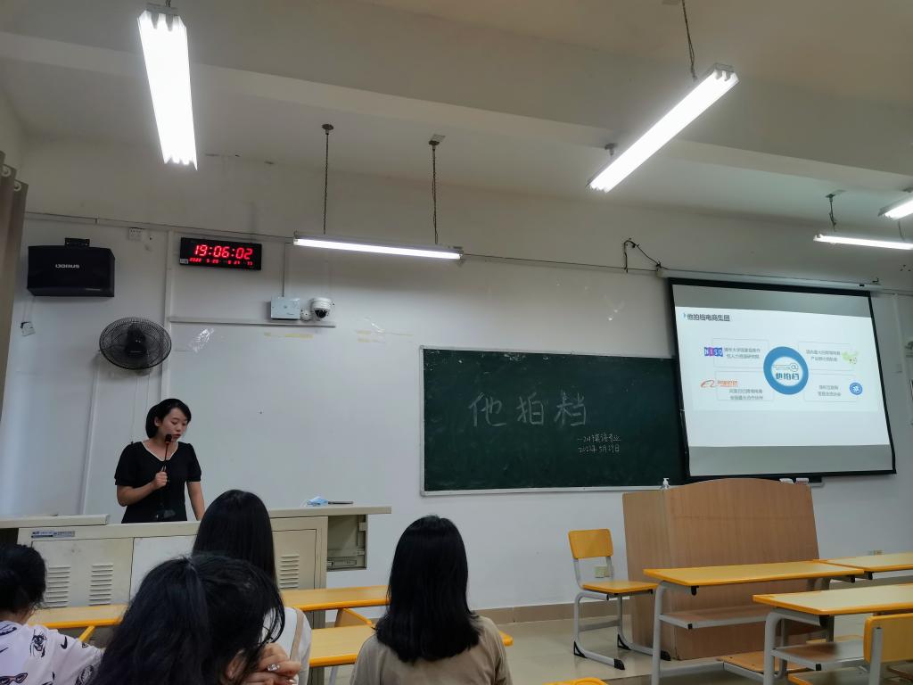 首先,杨文女士介绍了“他拍挡”电商集团的基本情况和发展历程,并对过去、现在和未来跨境电商宏观市场环境进行解读,让同学们初步了解电商的相关知识和行业发展现状。其次,她介绍有跨境物流公司、出口平台、跨境电商培育计划以及项目发展的流程说明。并向大家展示了“他拍挡”电商集团员工工作环境、薪资待遇、招聘岗位以及的实习优秀案例,表示欢迎同学能加入到“他拍挡”的队伍当中来。