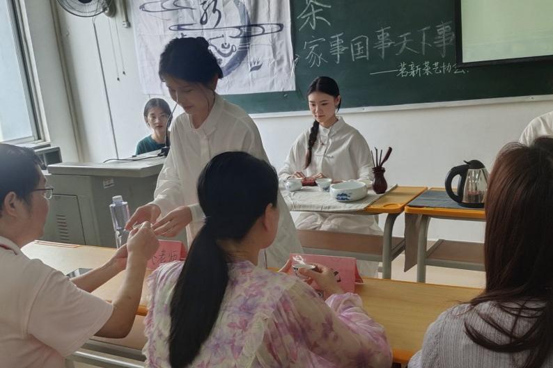 活动伴随着音乐,欣赏优雅自然的茶艺表演,特邀嘉宾王小毅老师为我们带来《茶:家事、国事、天下事》的茶艺讲座,最后王小毅老师点燃龙涎香,为同学们展示了好茶要有好水的实验活动,极大地吸引了大家的注意力与兴趣,让同学们更加了解我国千年茶文化的源远流长的历史与独具特色的魅力。