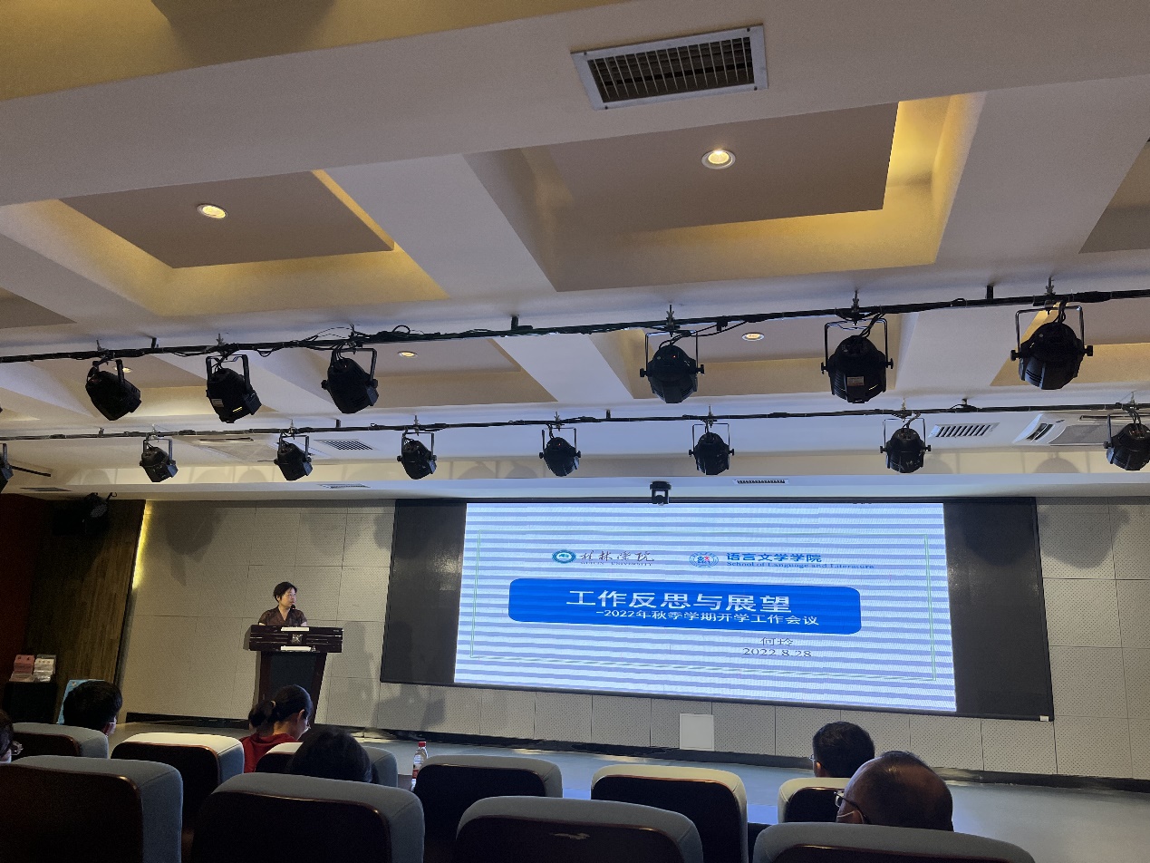 8月28日,语言文学学院在至善讲堂召开全院大会,何玲副校长、江仿书记、张超锋和陈锴副院长出席并做重要讲话,韦微副书记主持,学院根据疫情防控要求采取线上、线下相结合组织全体教师参加开学工作会议。