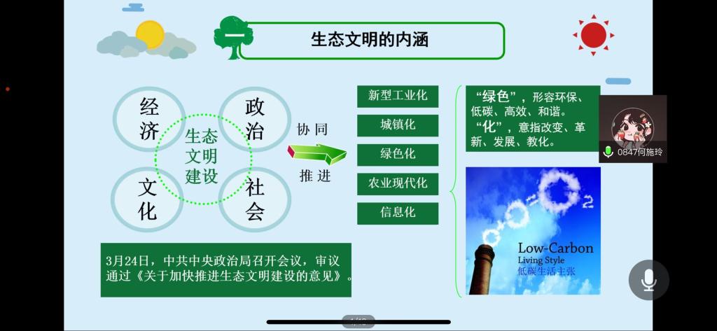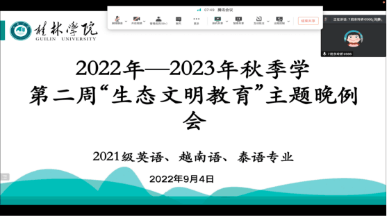 为深入贯彻习近平生态文明思想,胸怀“国之大者”,践行绿色发展理念,推进绿色校园建设,语言文学学院组织各支部于9月4日晚开展了生态文明科普主题教育。