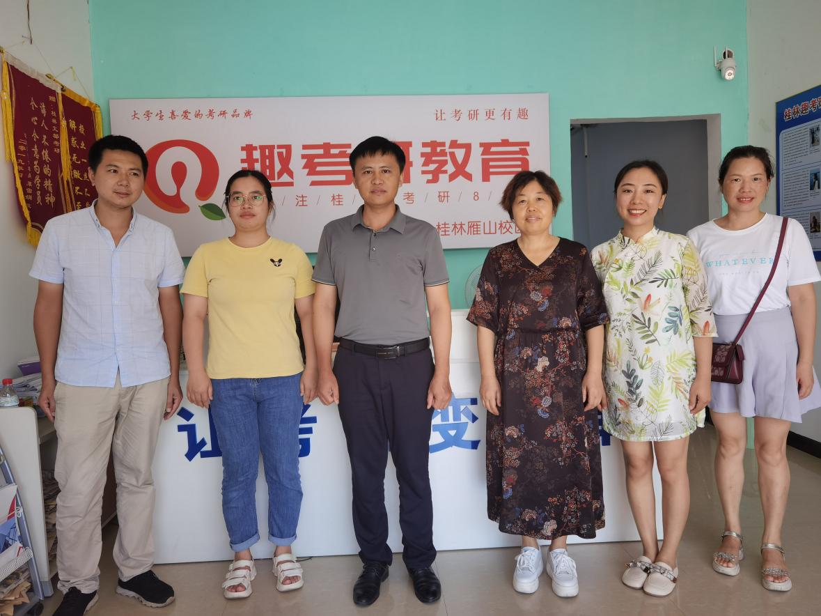 为了进一步加强校企合作,提高我院学生考研及教师资格证通过率,2022年8月15日,桂林学院副校长兼语言文学学院院长何玲、副书记韦微、辅导员石仁春一行走访调研桂林趣考研教育科技有限公司,与该公司工作人员进行深入交流。
