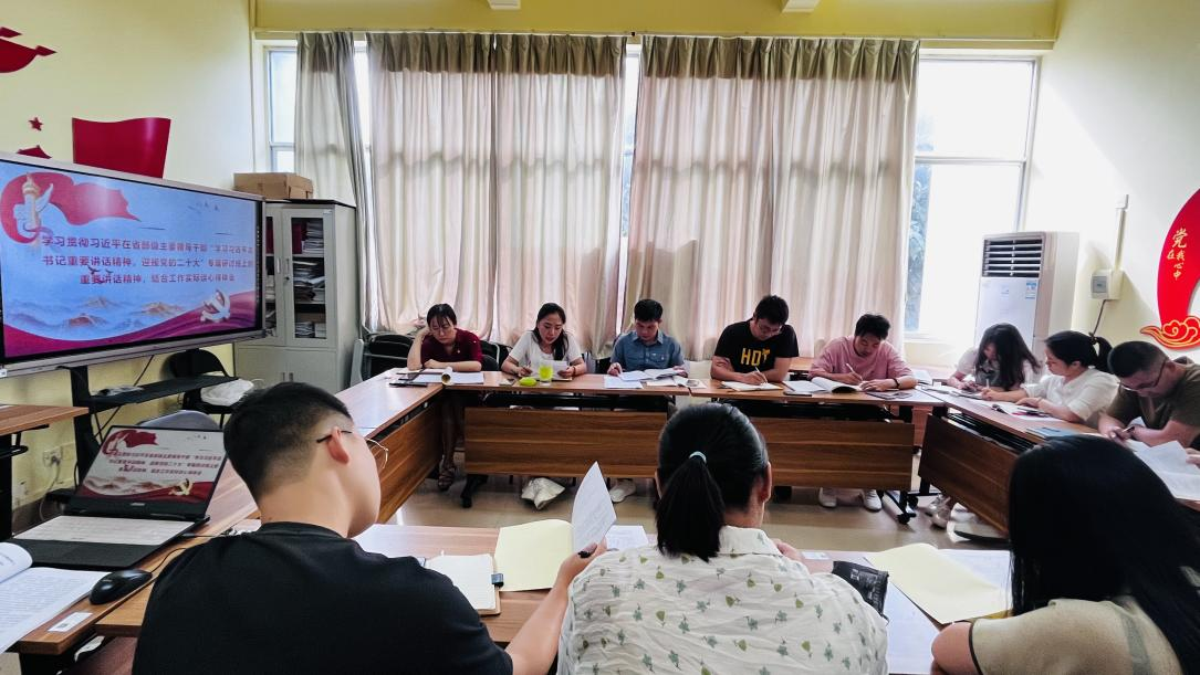 党总支副书记韦微就学习贯彻习近平总书记在省部级主要领导干部“学习习近平总书记重要讲话精神,迎接党的二十大”专题研讨班上的重要讲话精神,结合工作实际谈心得体会。韦微副书记强调我们要深刻领悟“两个确立”的决定性意义,坚定不移维护习近平总书记党中央的核心、全党的核心地位,言行一致地紧跟习近平总书记奋斗。要进一步学懂弄通做实习近平新时代中国特色社会主义思想,常学常新、常悟常进,不断增强政治判断力、政治领悟力、政治执行力。